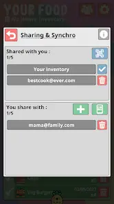 Google 経由で簡単に接続し、すべてのデバイス間で在庫を瞬時に同期できます。在庫を家族やルームメイトとリアルタイムで共有して管理し、パントリーと家の在庫管理に完全な一貫性を確保します。使いやすく、速く、非常に便利です。