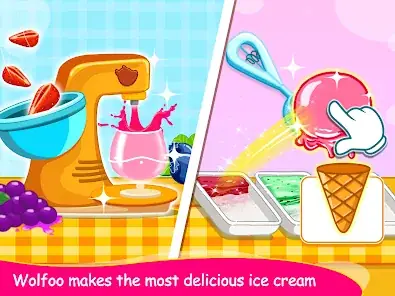 🎉? Wolfoo's Ice Cream Truck - Ice Cream Maker は、アイスクリームバーを含む多くのゲームプレイを備えた最高の My Ice Cream Shop ゲームです。この Wolfu's Ice Cream Truck ゲームは、あらゆるアイスクリームゲームの楽しさを備えた、女の子向けのアイスクリーム作り/料理ゲームです。このゲームは、子供向けの女の子と、料理やデザートメーカーのゲームが好きなすべての人向けです!