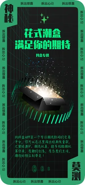 抖抖盒APP是一个专注潮流数码的交易平台,你可以在这里淘出经典限量款,汇聚经典IP、潮流玩具,超多炫酷潮玩等你来,有趣的创意,有态度的生活,潮流好物立刻带走!