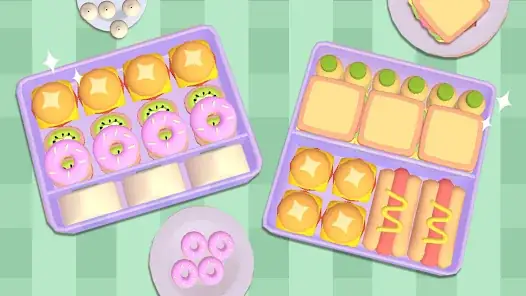 3Dのアニメーション風グラフィックとファーストパーソンビューが、あなたをこの収納ゲームの世界にどっぷりと浸らせます👀。お弁当箱整のきらめきや食品の影などのエフェクトは、収納ゲームの楽しみを一層深めます。寿司や刺身、ケーキ、イチゴ、サンドイッチ、キウイ、ドライフルーツといった種類豊富な食べ物が、お弁当整理整頓の醍醐味を増します🍣🍰🍓🥪。